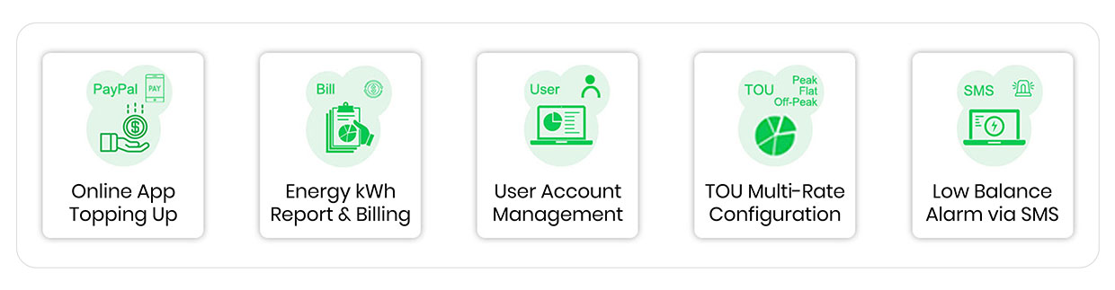 В решении для выставления счетов Acrel IoT EMS менеджеры объектов устанавливают пиковые, внепиковые и фиксированные тарифы TOU, обеспечивают режимы предоплаты или постоплаты и определяют пороговые значения низкого баланса. Пополнение счета пользователями через PayPal, кредитную карту или мобильное приложение; платформа автоматически отправляет SMS-оповещения, выдает счета в формате PDF и планирует удаленное отключение при нулевом кредите. Информационные панели в режиме реального времени, подсчет арендаторов и настраиваемые отчеты об энергопотреблении упрощают соблюдение требований ESG и распределение затрат.