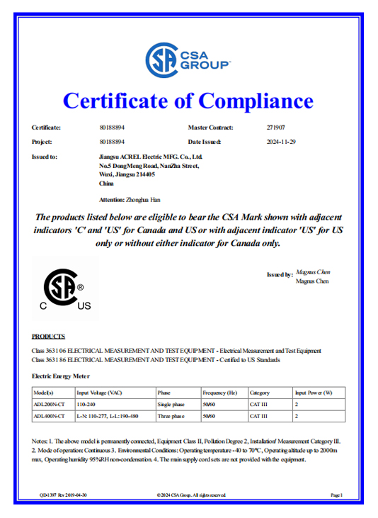 Входной сигнал трансформатора тока ADL400 CE-MID