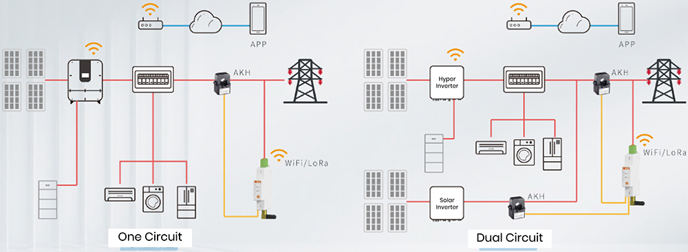 С Частота обновления питания 50 мс Серия ADL200W/ADL400W обеспечивает быстрое время отклика, необходимое для современных антирефлюксный (нулевой экспорт) системы. Конфигурации двухканальных измерений позволяют: