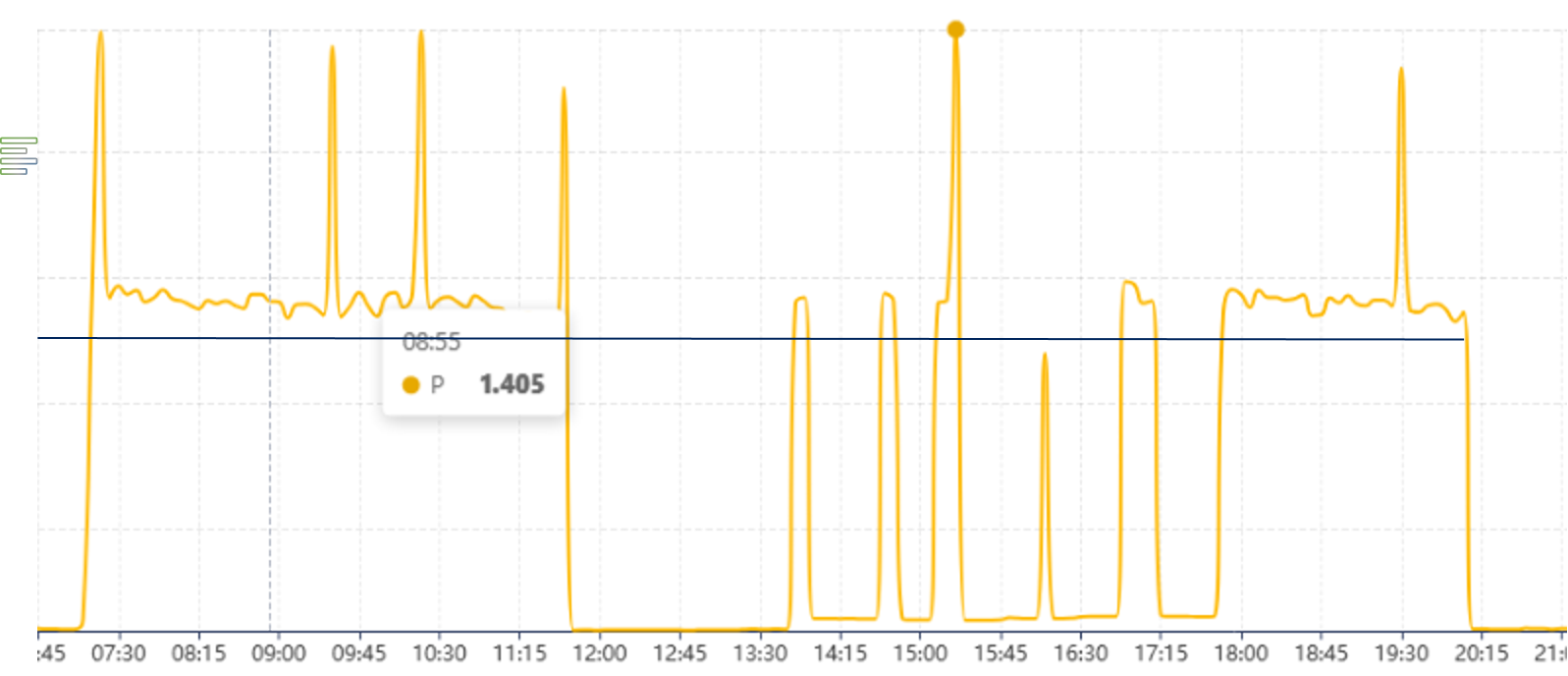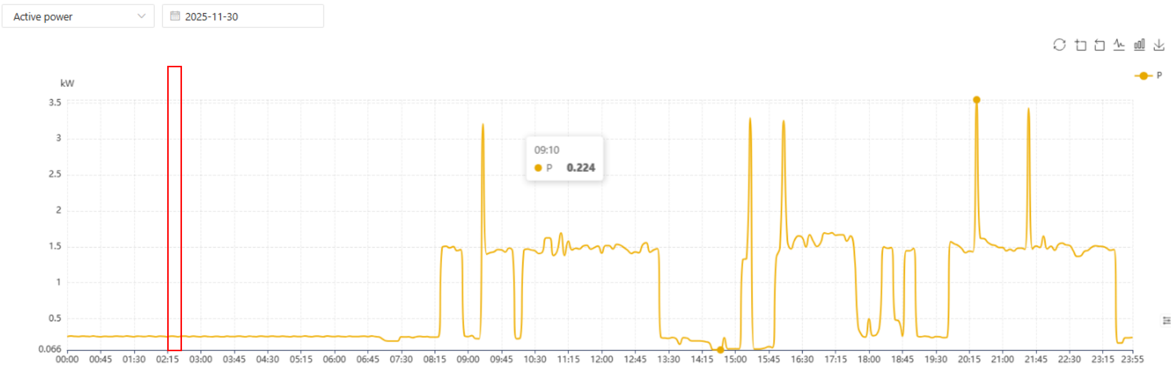 Максимальное потребление представляет собой самое высокое среднее значение мощности, зарегистрированное в течение цикла выставления счетов (обычно одного месяца) в пределах этих интервалов потребления. Стандартный интервал составляет 15 минут, но он может варьироваться в зависимости от коммунального предприятия или региона.