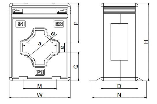 | Спецификация | Номинальный текущий коэффициент | Степень точности и соответствующая номинальная нагрузка (ВА/Ом) | Прямоточные животы | Спецификация шины (мм)/номер | Макс. Внешний диаметр кабеля (мм) | Установка | ||