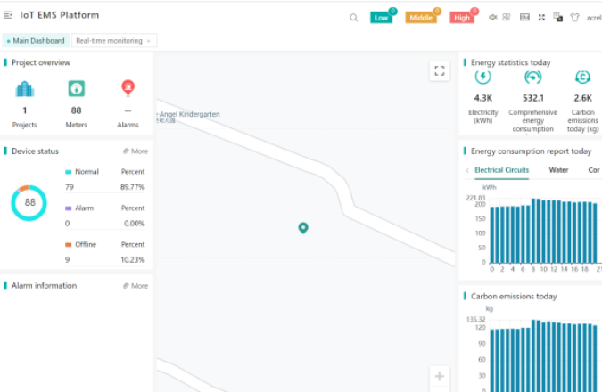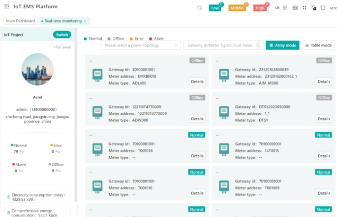 Продукты проекта: многоконтурный интеллектуальный счетчик энергии IoT ADW210, трехфазный беспроводной интеллектуальный счетчик энергии IoT ADW300, трехфазный счетчик энергии ADL400 на DIN-рейке, интеллектуальный шлюз IoT AWT100, платформа Acrel IoT-EMS